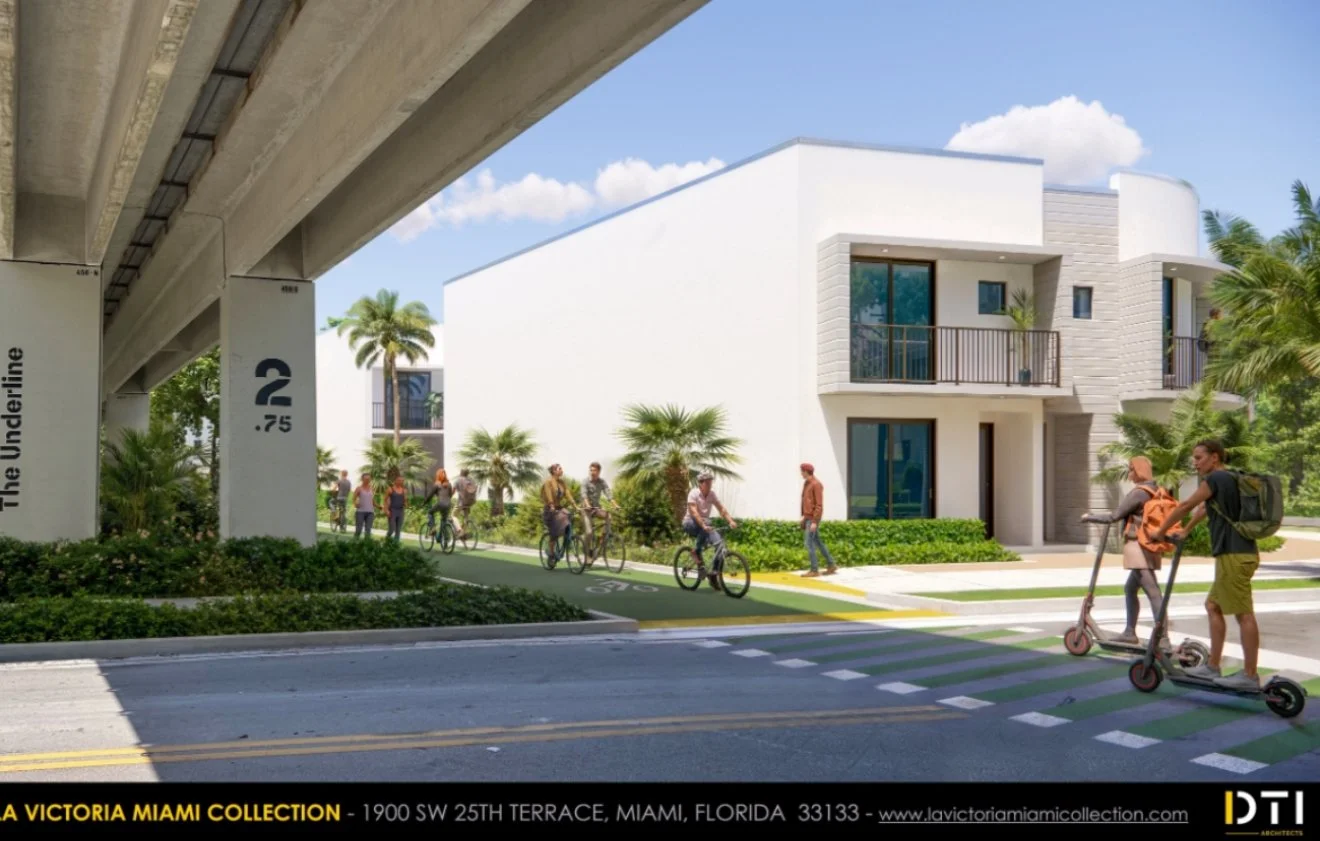 Introduction: The La Victoria Miami Collection Mural Project, in partnership with the City of Miami, District 4, is an initiative to add more world-class art to The Underline. Situated at a multi-million-dollar development of five Art Deco townhomes in Coconut Grove, these murals serve as a centerpiece for these luxury short-term rentals. Celebrating Cuban heritage through architecture and storytelling, the project occupies what The Underline’s art curator calls one of “the most visually prominent locations in the entire 10-mile park.” This location is highly visible to the thousands of commuters traveling along US-1 and the daily Metrorail riders above, generating an estimated 45 million+ annual impressions.